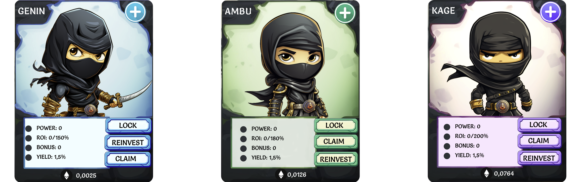 Each ninja type offers a base daily return of 1.5%, but with different maximum ROI potentials.